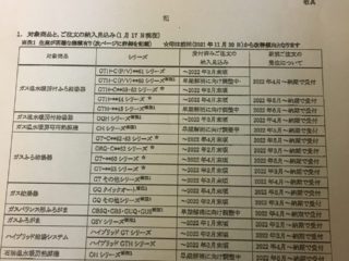 先日、ガスの点検時に給湯器が品薄になっているとの情報を聞きまして・・・