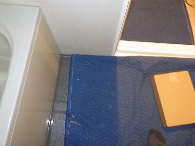 お風呂の床に養生します
