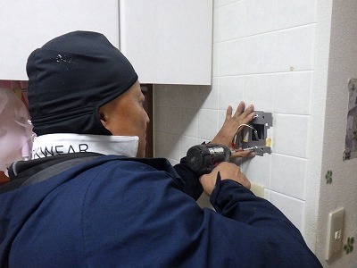 新しい台所リモコンの取り付け金具を取り付けます