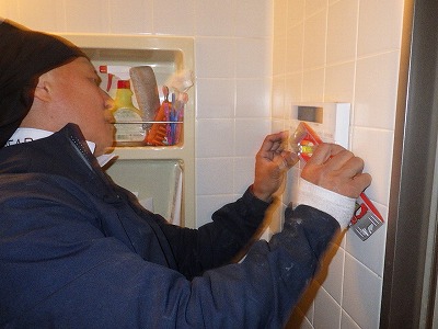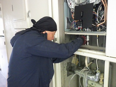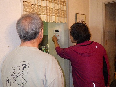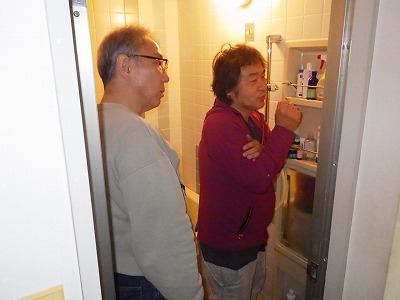 お客様と一緒に水漏れ・ガス漏れを確認中です