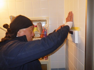 浴室リモコンのまわりにマスキングテープを取り付けます