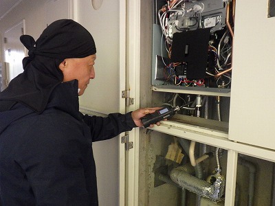 ガス漏れ確認をガス漏れ検知器できちんと確認します