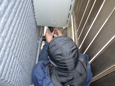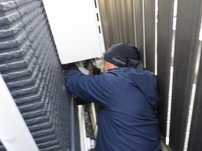 既存のノーリツエコジョーズ給湯器を壁より取り外します