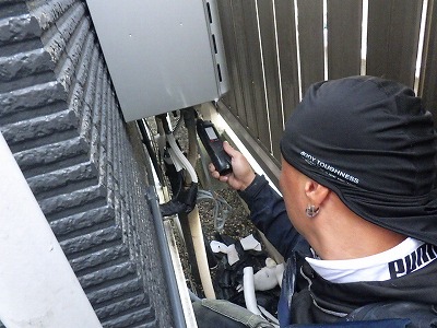 ガス漏れ確認をガス漏れ検知器できちんと確認します